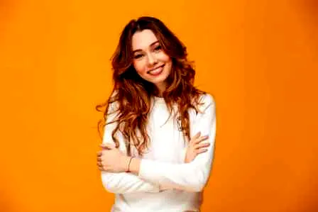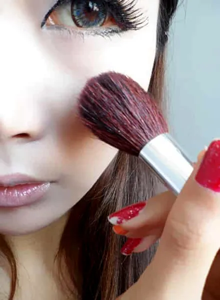 最后在颧骨处以打圈的方式刷橘色系腮红,最好是用大大的圆形腮红刷,这样更有助于腮红的分布。