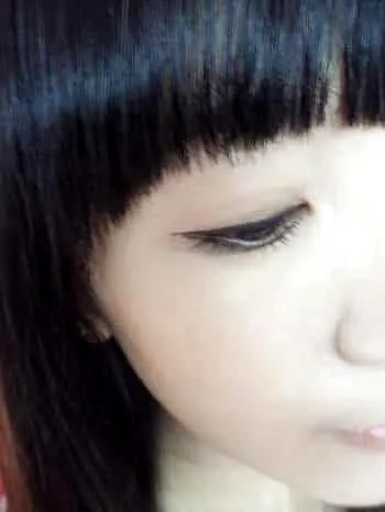 沿着眼部睫毛根部画上眼线膏,画眼线的时候一定要把睫毛根部全部填满 这样看起来会更放大眼睛。