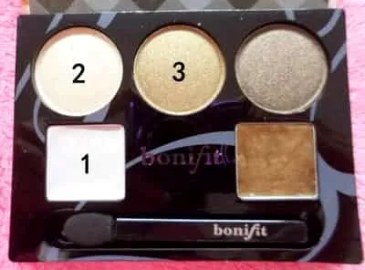 选择粉质细腻的香槟色系眼影组合,分别以1、2、3号区别开来。