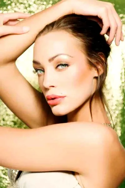 步骤五:顺着睫毛根部刷金棕色眼影,包围上眼皮和下眼尾哦。然后再眼角的三角区域刷上银灰色眼影。