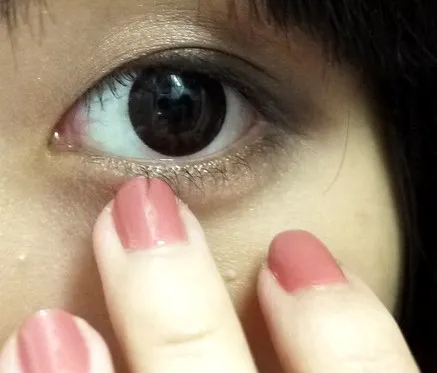 步骤五:用手指蘸取米色眼影打亮卧蚕,这一步非常的重要。