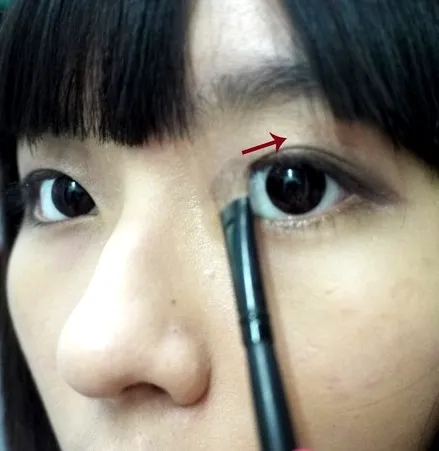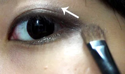 步骤二:然后再蘸取灰色眼影刷在眼褶上方,作为晕染。