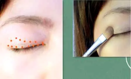 Step5:先用浅色打底轻轻扫过,尾部加上深色眼影。