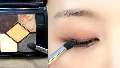 Step3:换眼影棉蘸取浅黑色眼影沿着睫毛根部小面积晕染,加重眼睛四周的轮廓感。