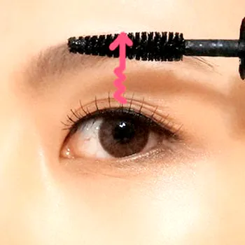 Step10:然后刷上睫毛膏,眼头、眼尾、还有下睫毛这些比较细小的部位一般使用刷头的头部来刷。