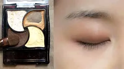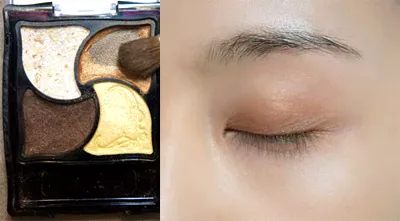 Step1:这里省略了底妆步骤,即隔离-BB霜。然后在眼影盒里找到浅棕色眼影,用宽的眼影刷蘸取少量刷在眼窝。