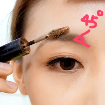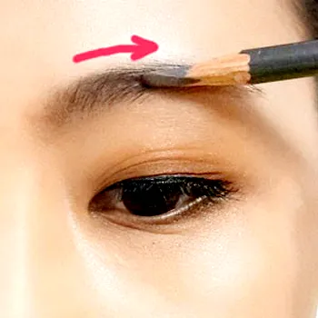 Step7:将眉笔削成宽扁状,然后沿着眉头往眉尾方向描画,越往后颜色越淡。