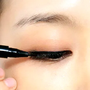Step4:将眼皮往上拉,用细毛笔往内眼线进行填充。