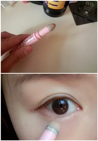 第四步:用白色珠光笔画在下眼睑的位置,制造卧蚕的效果。