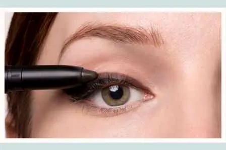 STEP 3:然后,在黑色眼线上方再用棕色眼线笔画一层,收尾不需要做翘处理。