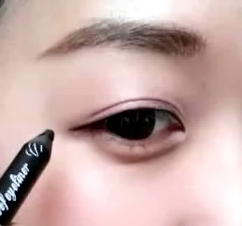 步骤五:使用眼线笔在上睫毛根部画出一根细细的眼线,再刷两遍睫毛膏。