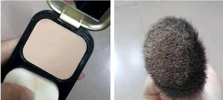 步骤一:先用BB霜或者是粉底在脸上均匀的涂抹,然后再用大粉刷蘸取适量的干粉轻轻的扫在脸上。