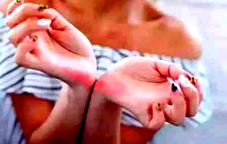 Step6:两手掌相互推压,直到颜色变浅。