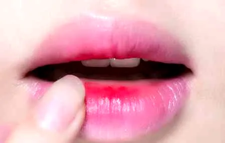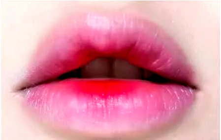 步骤三:用手指逐渐向双唇边缘晕开,打造出渐变的感觉。