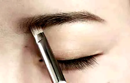 步骤四:之后用棕色的眉粉扫一遍眉毛。在黑色的基础上用棕色中和一下,既让眉毛更柔和一些又不会失去它该有的感觉。但小编说一下哈,橘色系妆容更适合浅黑色眉毛和灰色眉毛。
