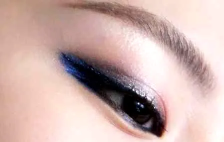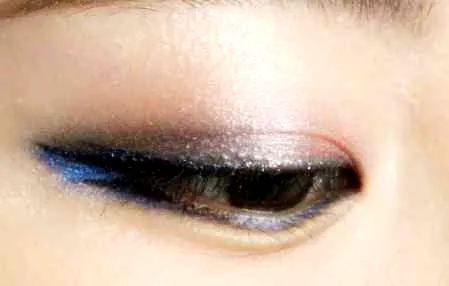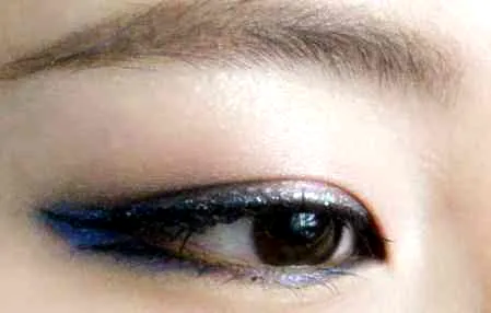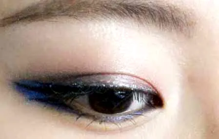 1.眼线刷(唇刷)巧用:用干净微潮湿的眼线刷,沾取足量的天蓝色眼影,点在三层眼影之间的两个空隙中(越饱满越好,并且小心千万不要遮挡住眼线的清晰度。)