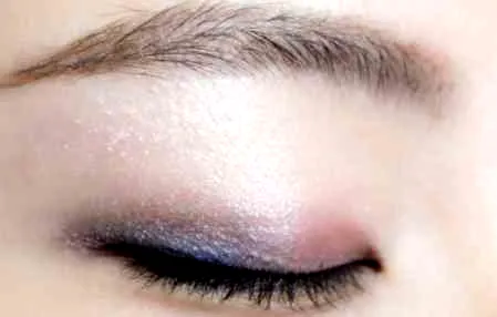 1.用浅**色或银色珠光眼影,先给整个眼皮打底;