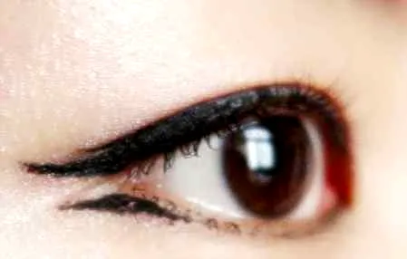 2.下眼线拉长并微微向下(不要画太长哦,除非你想要鱼尾纹的效果!)