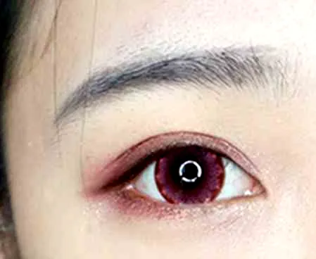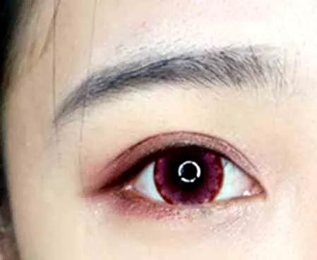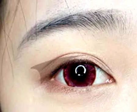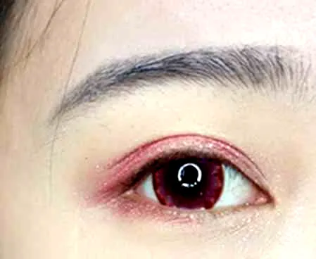 用红色眼影从眼尾向前自然晕染,带过眼尾,让整体更加自然。