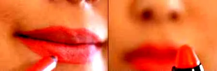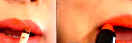 介绍第二种利用唇膏笔和唇膏结合的方法。涂鲜艳颜色的唇膏都希望能更显色,所以先用唇膏笔进行打底。