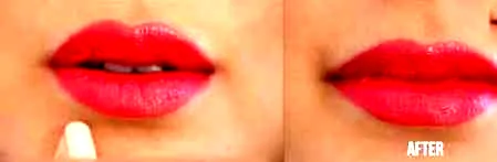 唇线刷的方法和第一种技巧一样,涂好后为了显色,可以再用唇膏涂一下完成
