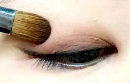 将轮廓色眼影粉晕染至下眼尾至眼头,调整眼睛形状至平行四边形。