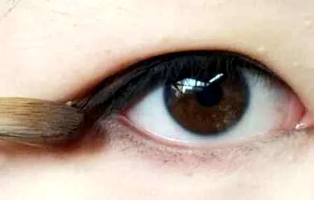 黑色眼影粉晕染眼线边缘,增加持久性和流畅感。