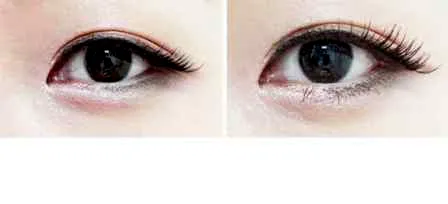 STEP13:给上睫毛粘上整福假睫毛。