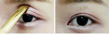 STEP1:用粉色眼影轻轻在上眼睑处刷上两层。