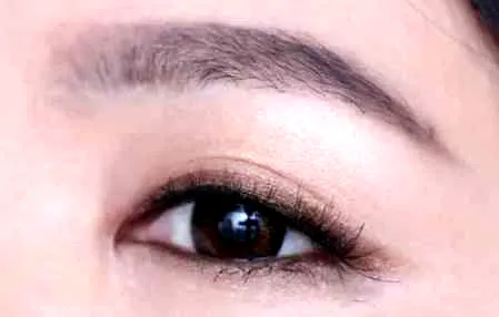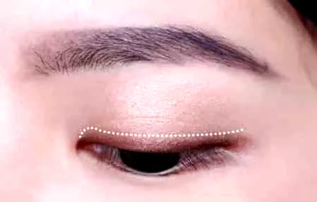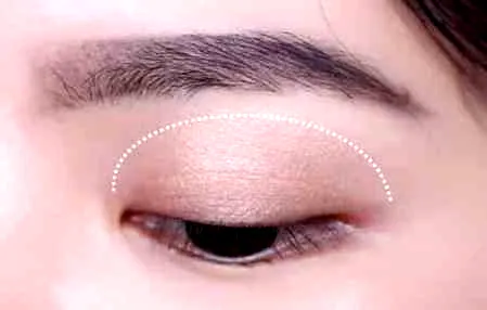 用哑光米色眼影大范围画在眼窝上,因为颜色比较浅,所以怎么画也不怕出错的!