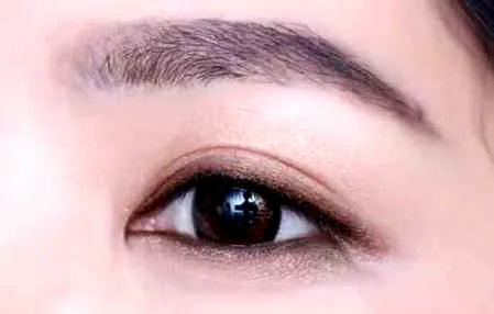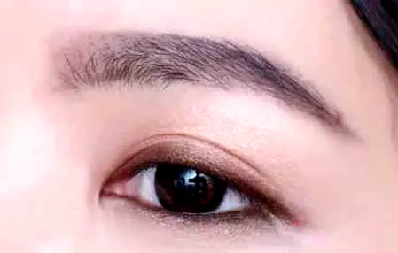 用哑光的深棕色眼影画在外眼线的位置,眼尾稍微拉长,不需要上扬。