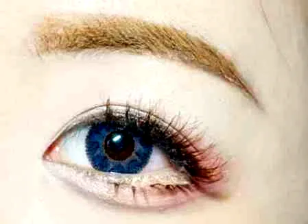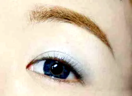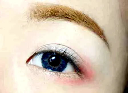第一步:整个上眼皮涂上灰蓝色眼影,边缘记得要晕染自然。