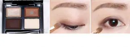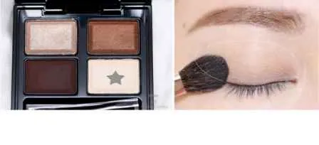 STEP9:用中号眼影刷取提亮色,大范围铺在靠近眼头部分用作提亮,用眼影刷再次取粉,叠在卧蚕部分。