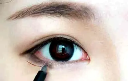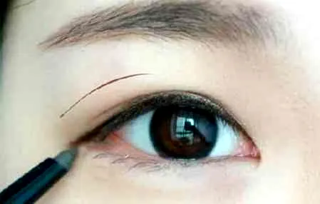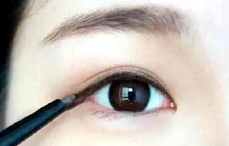 第五步:用棕色眼线笔画出内外眼线,眼线不要太粗。