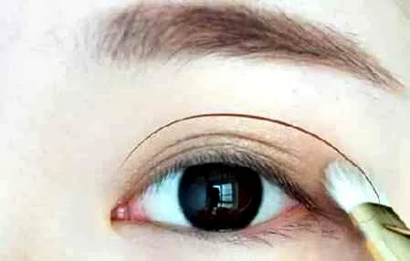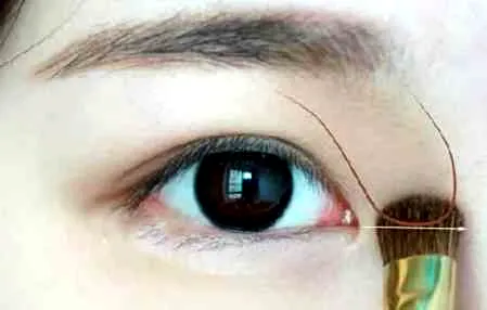 第三步:刷子沾取浅棕色眼影在半个上眼帘处轻轻地反复耍次,在睁眼的时候可以看见大约3mm,IU的眼妆很清淡,很适合日常用,眼影的画法也很简单,铺一个浅棕色就OK。