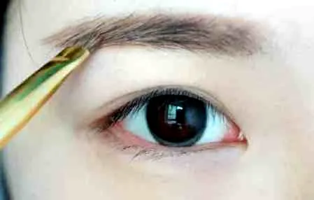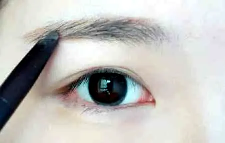 第一步:用眉笔给眉毛画出框架,IU的妆容偏邻家小**的感觉,眉形是韩式平眉。