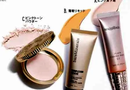 彩妆工具:你需要准备的单品有:A粉色妆前乳;B轻薄粉底液;C粉色散粉;