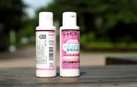 清洁剂和清洁皂不同的是,清洁产品的质地不同,但第一页也是将美妆蛋完全浸湿,将美妆蛋放在清洁剂的瓶口,将清洁剂挤压出来,这样子的话,清洁剂就直接会冲进美妆蛋内部和表层。后续的步骤与清洁皂一样,用手反复利用泡沫揉搓美妆蛋,然后冲洗干净,在阴凉通风处晾干即可。