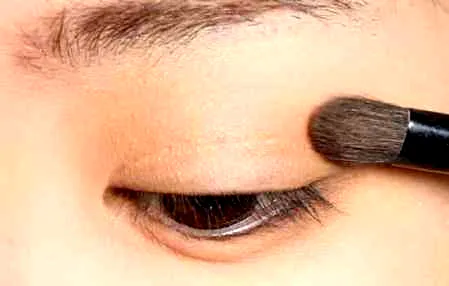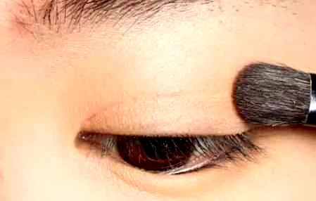 第三步:眼影一定要用亚光的,一点珠光都不要带,先用一个接近肉色的眼影给整个上眼皮打底。