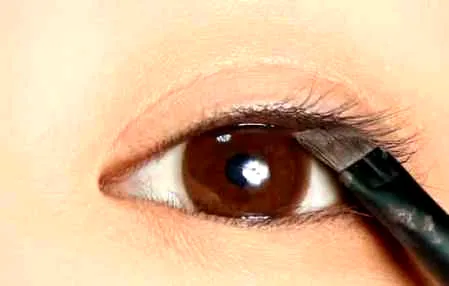第五步:用棕色眼线膏画内眼线,只要内眼线就够,但不要画出来哦。画内眼线的目的是为了让眼睛更有神。