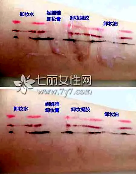 卸妆力才是最重要的啦,为了**卸妆膏的卸妆能力,我使用了防水的眼线液、眼影笔、唇笔画在手臂上。一般来说,眼影笔和眉笔比较容易卸除,而防水眼线液才是比较有考验的了。一起来见证大白罐的能力吧!