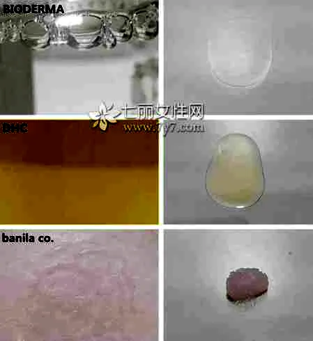 把3个产品分别涂抹于手背后,卸妆水就是水润的液体;卸妆油就是很柔和的油质地;卸妆膏刚涂在手背上后感觉很柔软,刚到手背上就能自然化开,很舒服的感觉。