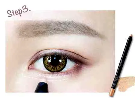 第三步:香槟色眼线笔提亮眼头和卧蚕的位置,这里用的是G&R的#302。
