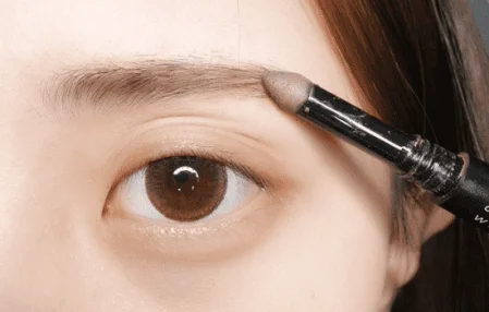第一步:先用眉刷梳理眉毛,刷去眉毛上多余的粉。用眉粉根据眉形扫一下眉,用眉笔勾勒一下眉形,上面的线条可以靠蹭上色,下面的线条可以画实一些。