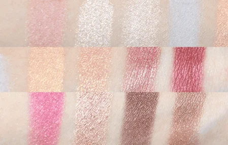 试色来看,粉蓝的配色不怎么显色,粉质中规中矩,普通韩系彩妆的质量。上色度中等,略微飞粉。