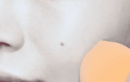 把气垫BB涂抹在脸上,并用湿润的海绵蛋以按压的手法把BB推匀。让底妆能更好的覆盖入毛孔,服帖又持久。