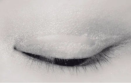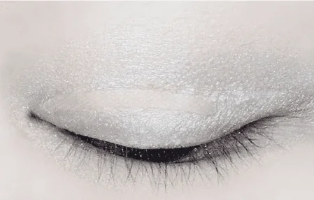 使用浅灰色眼影给眼皮进行打底,这里使用的产品是植村秀卡尔小姐眼影盘。