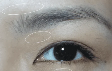 第七步:高光提亮眉头下方和卧蚕中,眉头下方提亮可打造比较平眼窝。