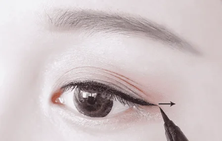 第一步:眼尾的画法很简单,按一定角度拉长就好,建议用眼线液笔,画的时候保持眼尾的流畅就好。