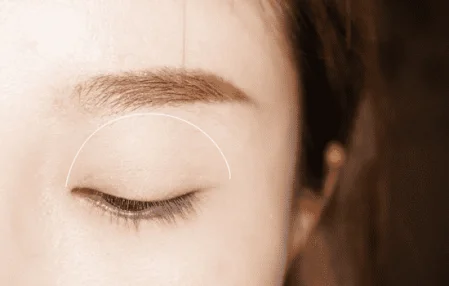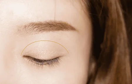 第二步:植村秀无色限眼影ME126,珠光色眼影用晕染刷沾取,大面积扫在眼窝上,画在图示范围内。
